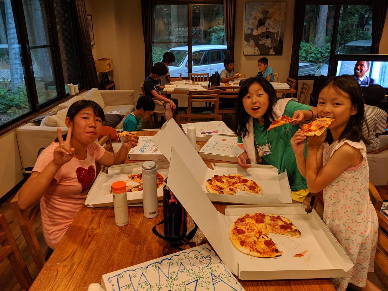 その後は4人ずつキッチンに入ってオリジナルのピザ作り!