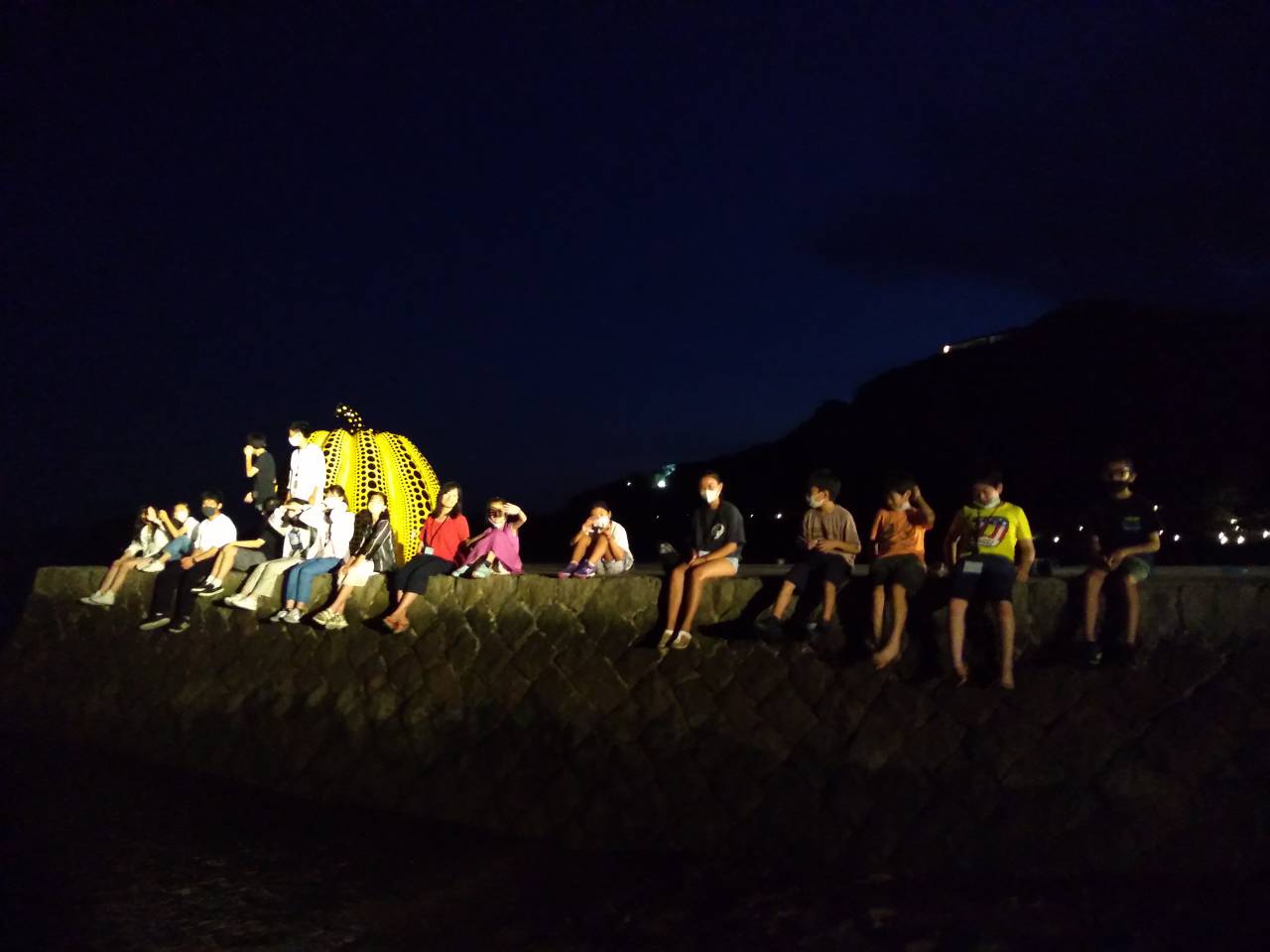夜の砂浜を歩いて、黄色いかぼちゃまで行ってきました。