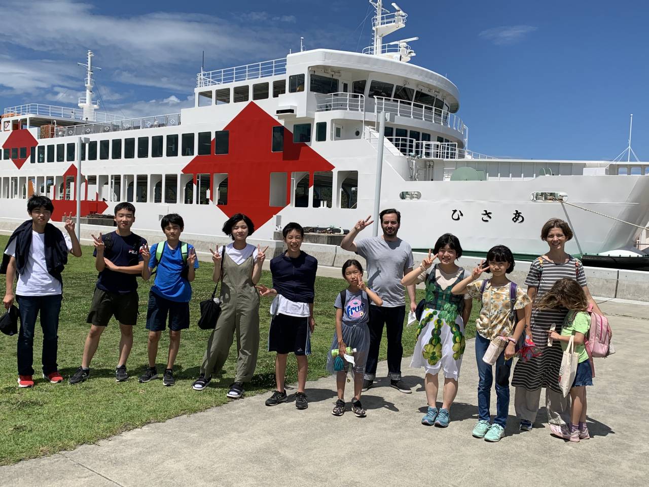 フェリーに乗り込んで、島に残る先生や友達に見えなくなるまで手を振ります。