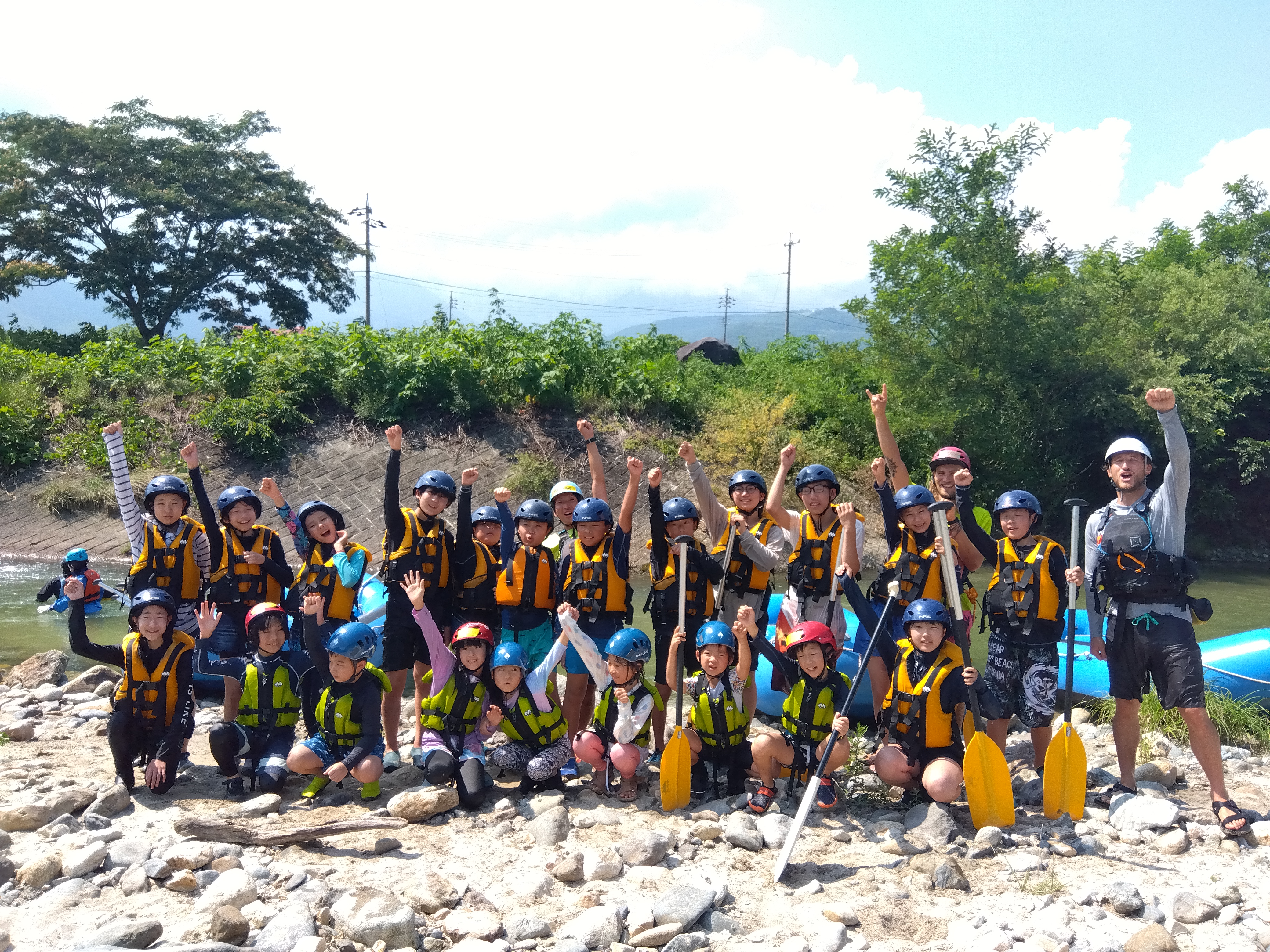森の中を流れる姫川は、 ところどころ流れが速くなっており、みんなエキサイティングにラフティングを楽し みました。