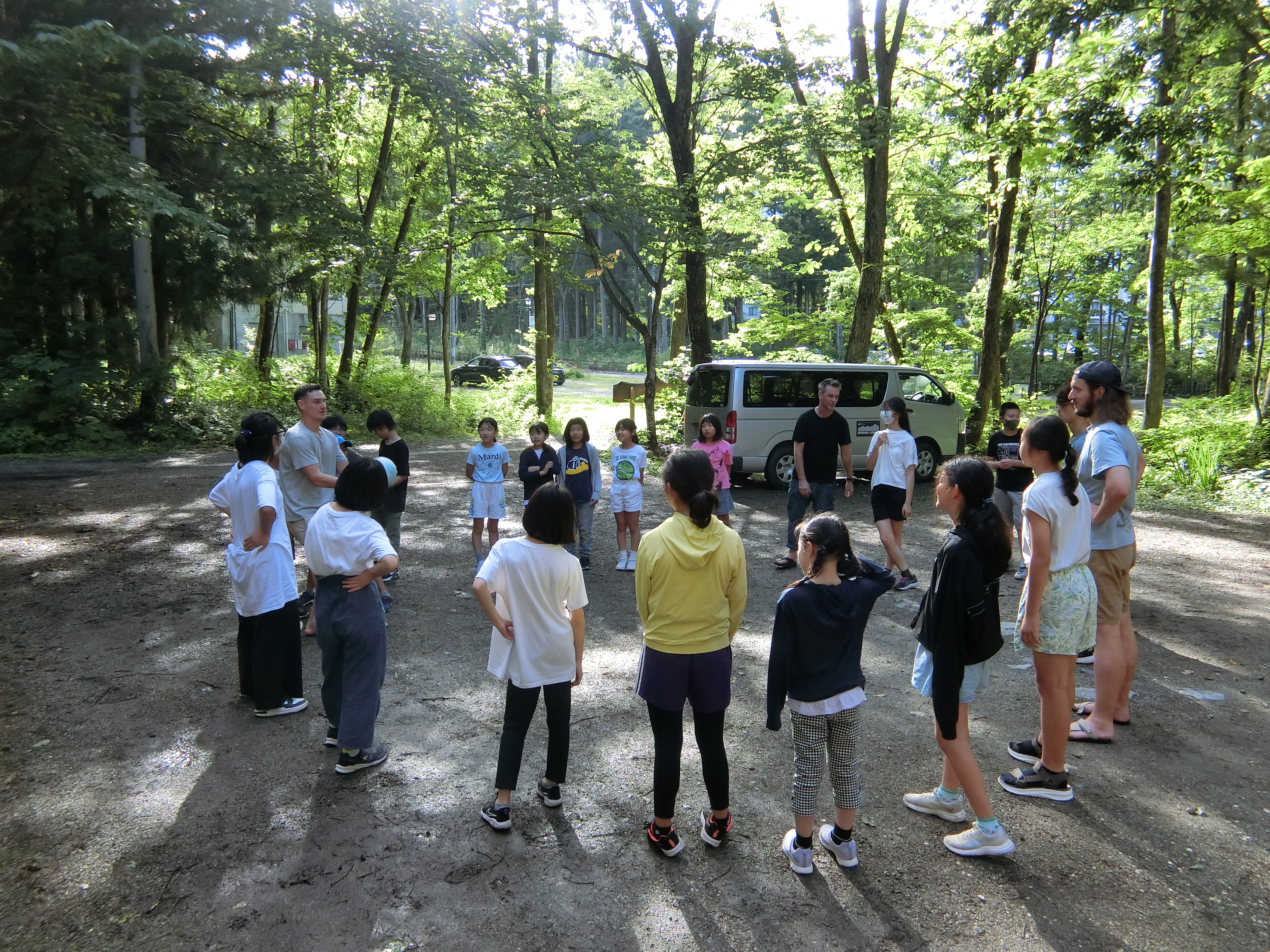 参加者は元気いっぱいの21名の皆さん。先生たちと英語を学び、英語で楽しく過ごす5日間です。