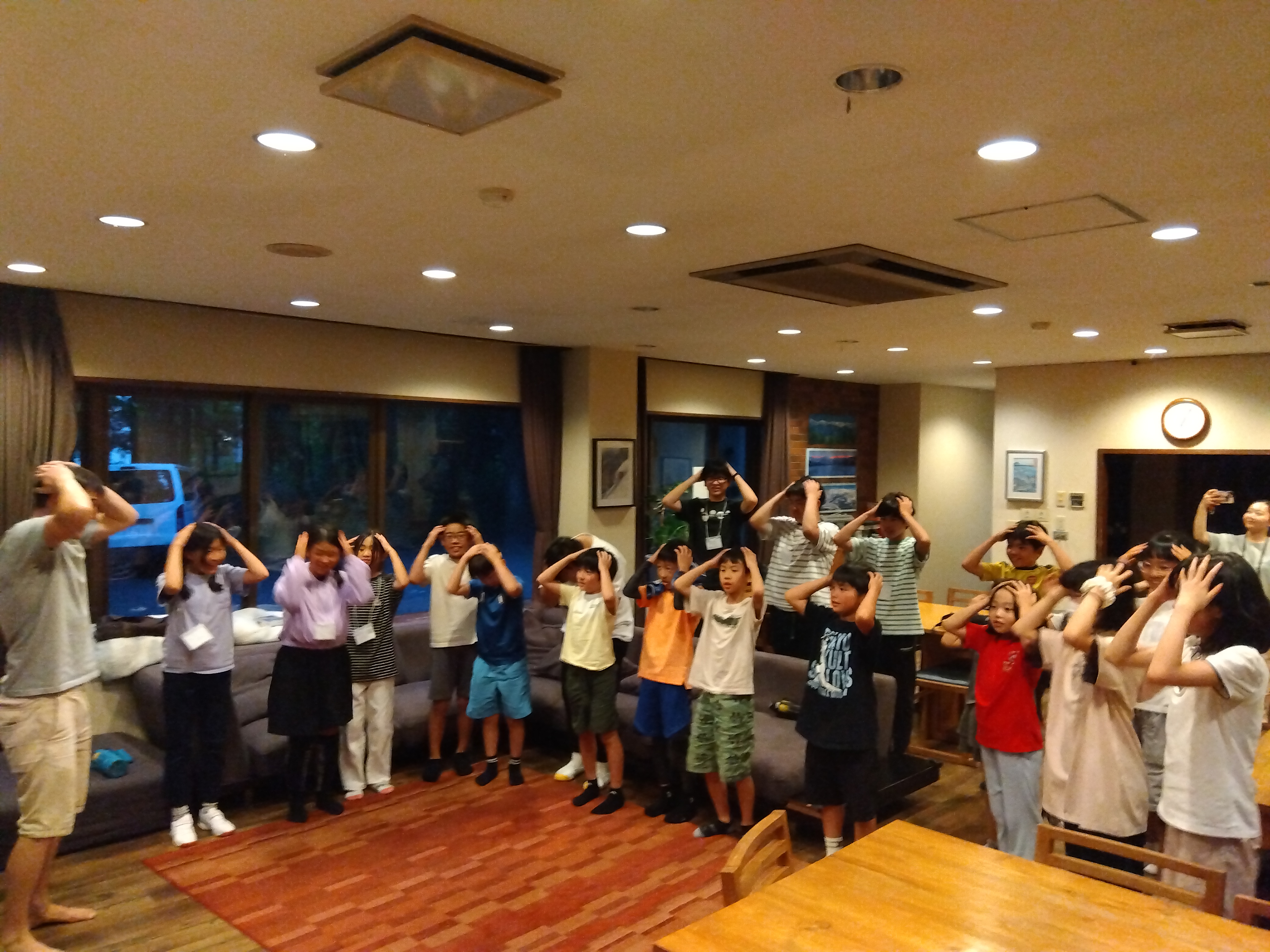 本日のプログラムはこれでおしまいです。早起きから始まり、新しい環境、お友達と、とても長い1日だったと思います。今日はぐっすり寝て、明日もまた楽しく頑張りましょう!