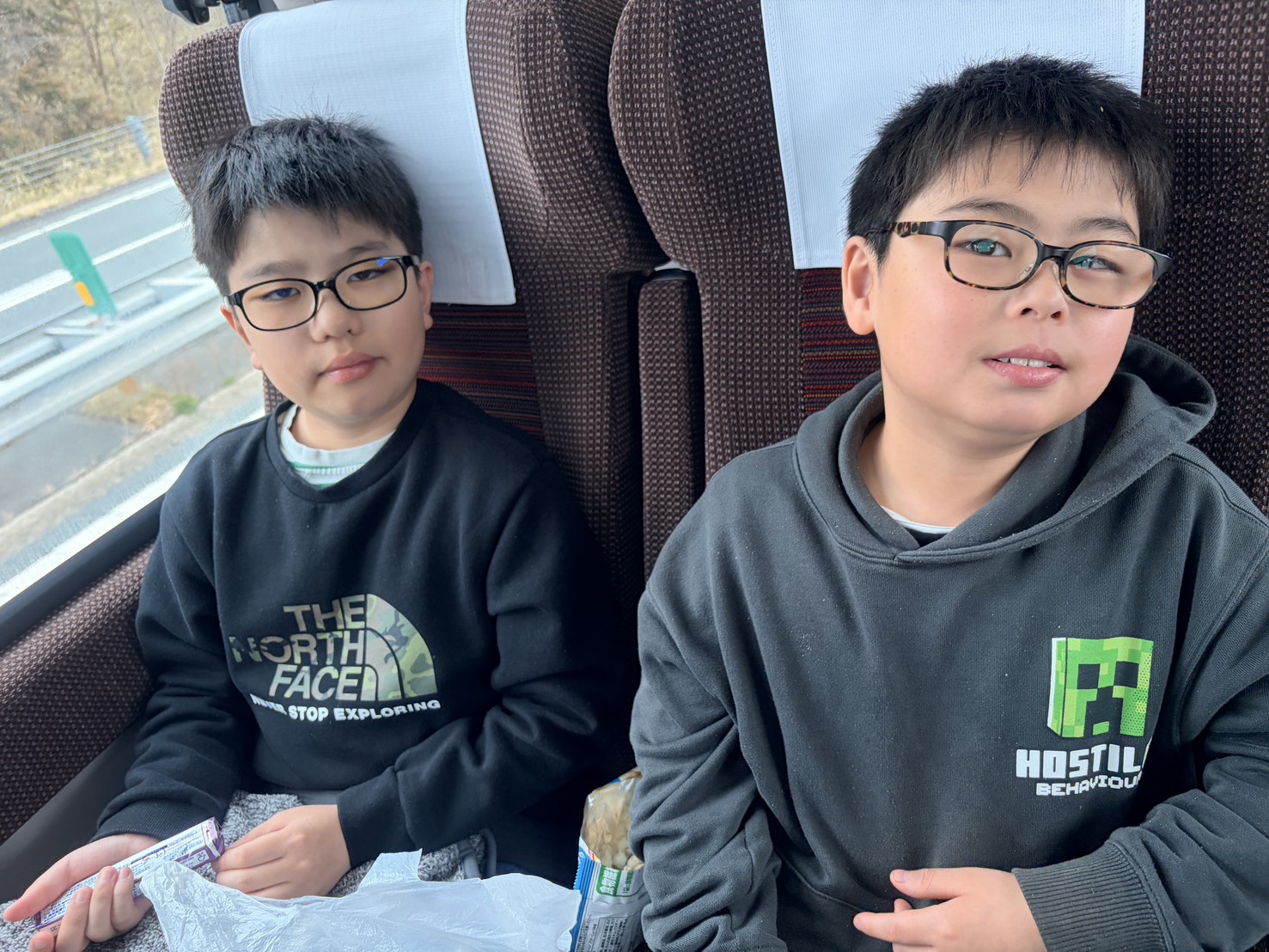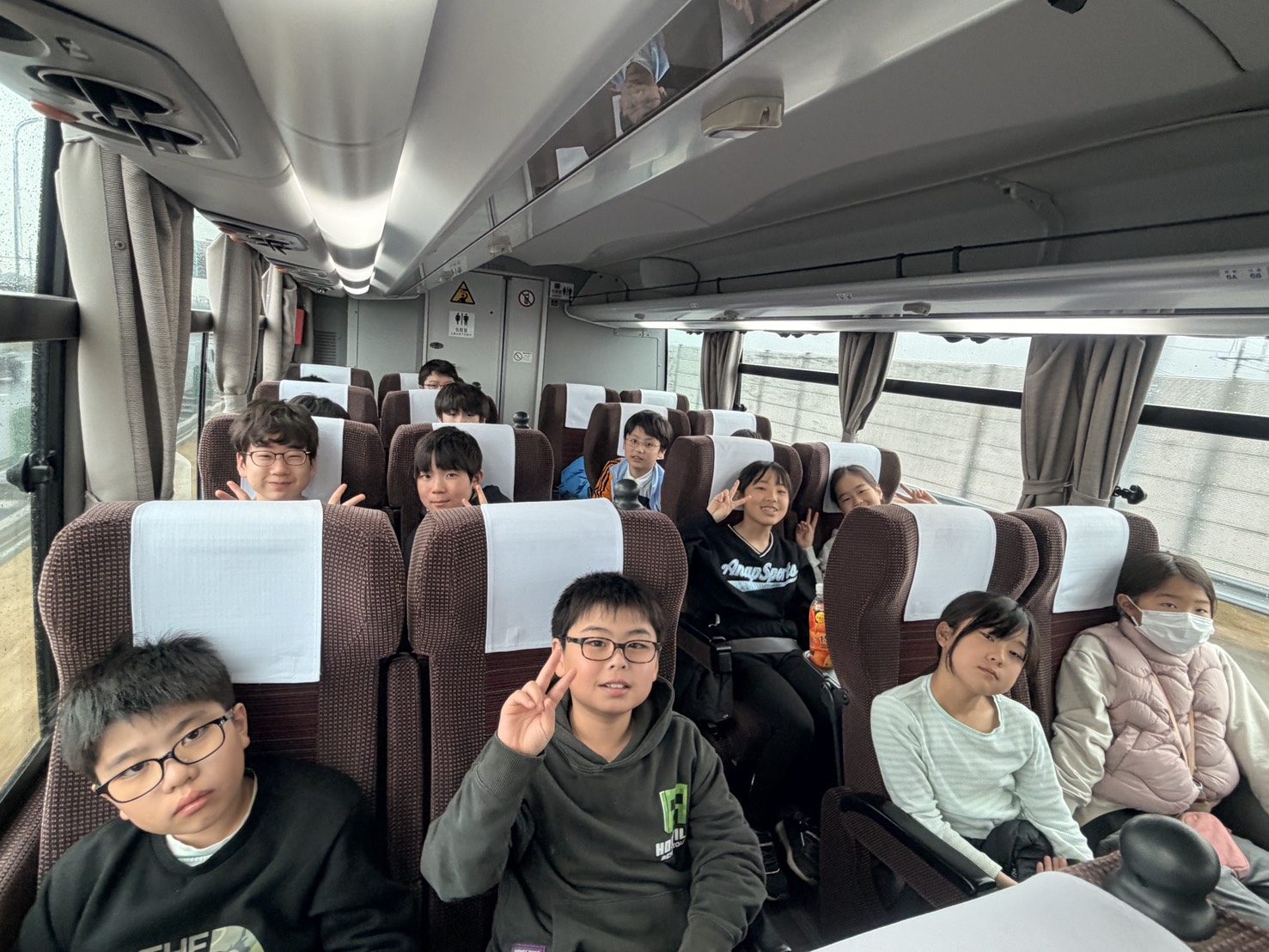 車内ではゲームをしたり、友達と話しをしたりして長い距離を過ごしました。