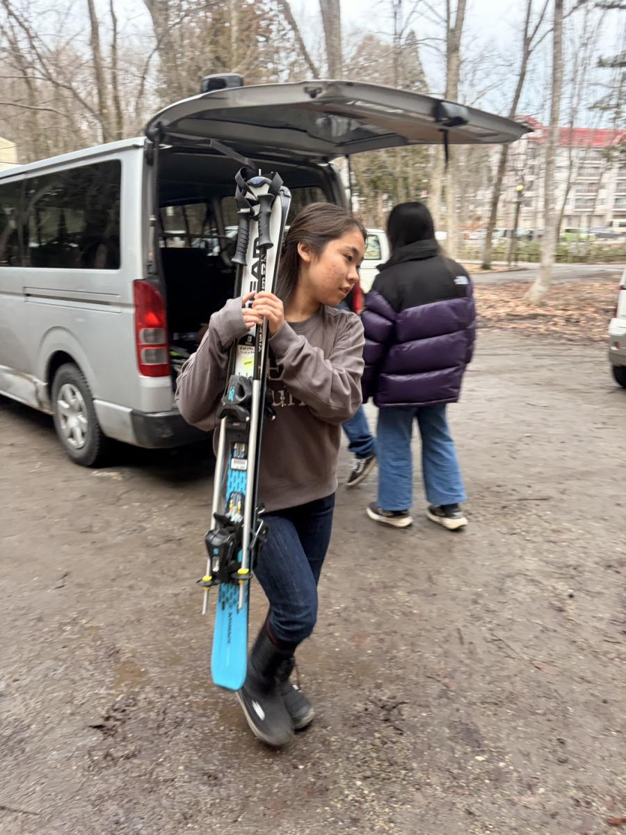 英語レッスンの後はスキーレンタルのサイズ合わせ。