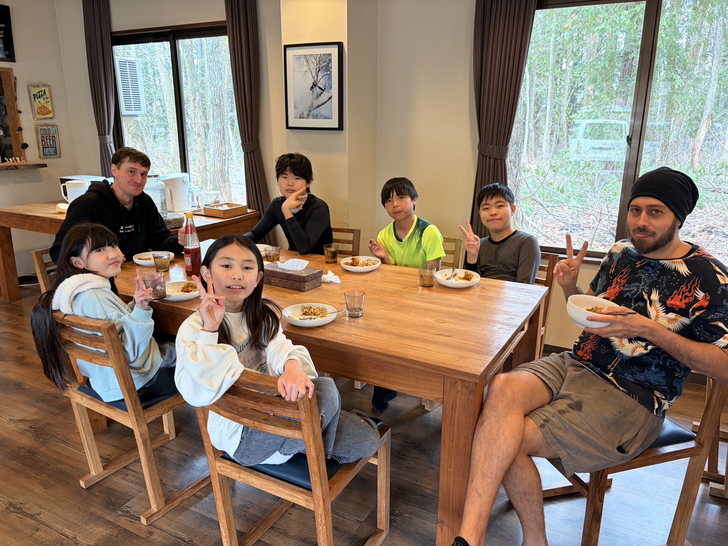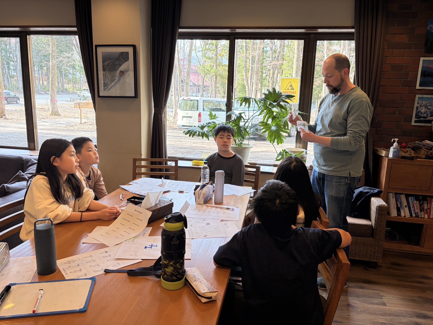 朝食後に英語の先生からスキーするにはどんな物が必要か英語で説明を受けて、準備を始めました。