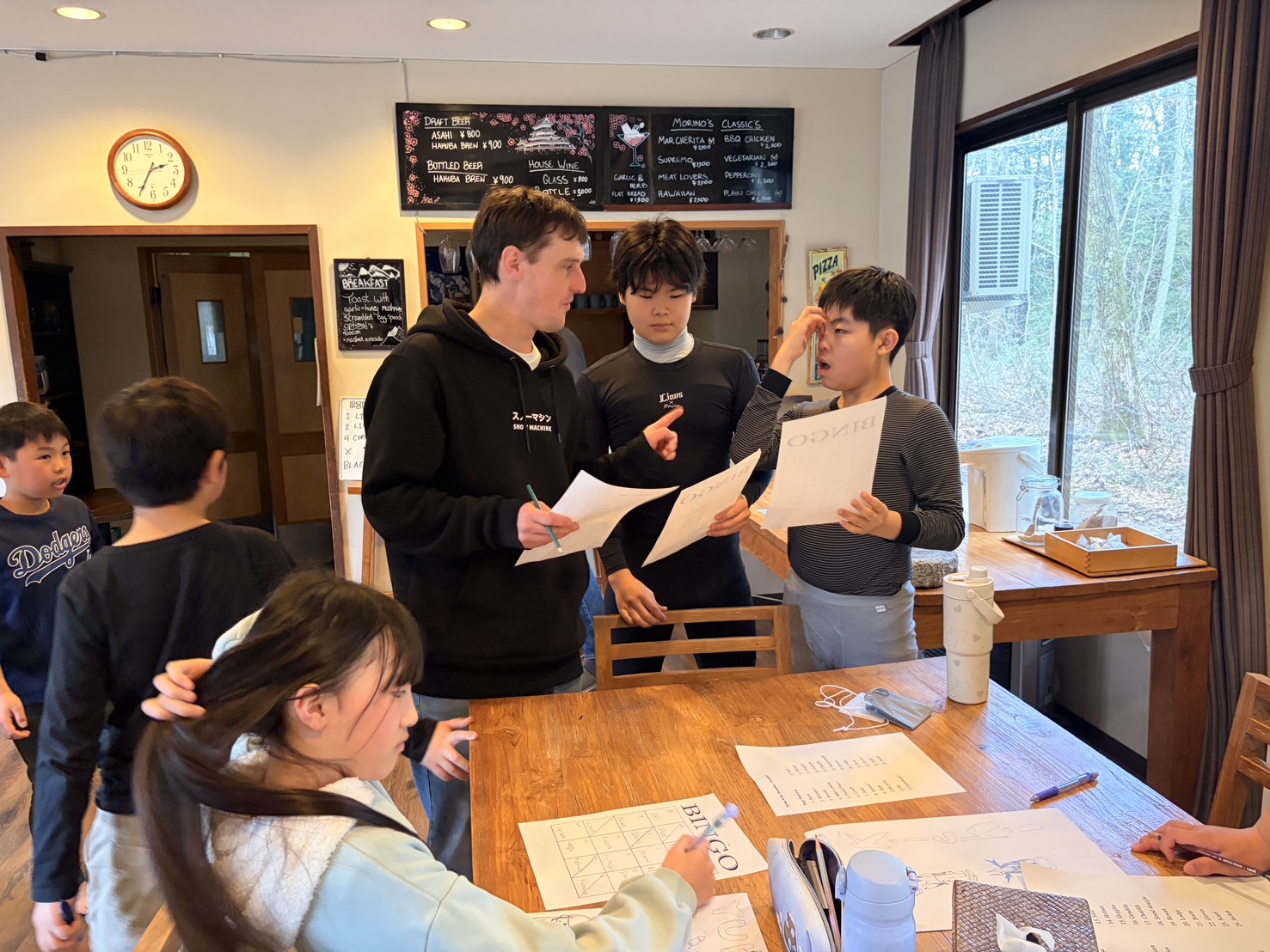 午後のレッスンはスキーに関する単語のビンゴゲーム