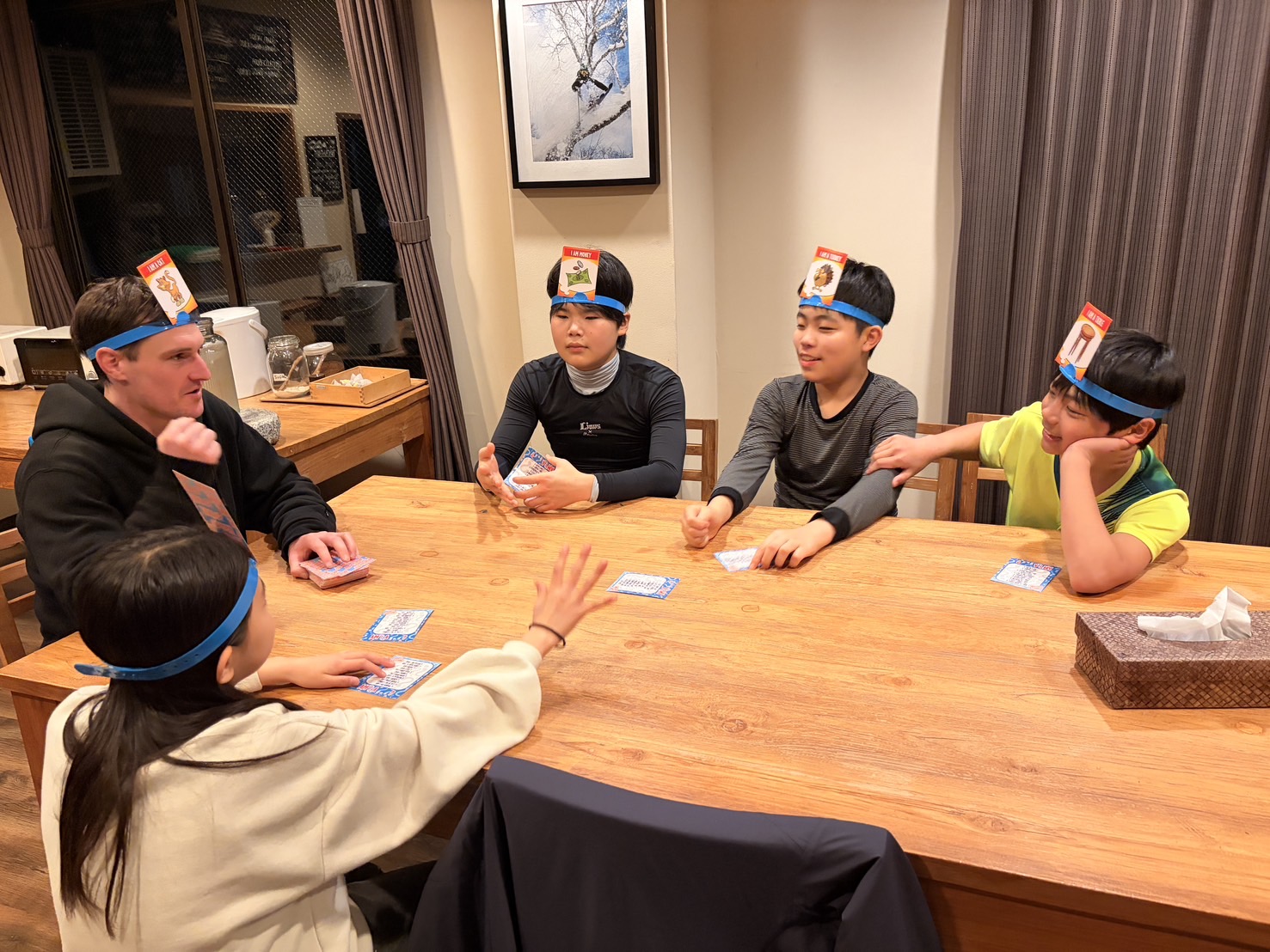 自分が誰だか、知っている人に質問をして当てるゲームとカードゲームの2つ。