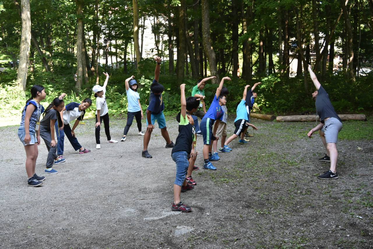 朝の7:45~運動をはじめ、皆さん朝早くから準備体操を頑張りました。