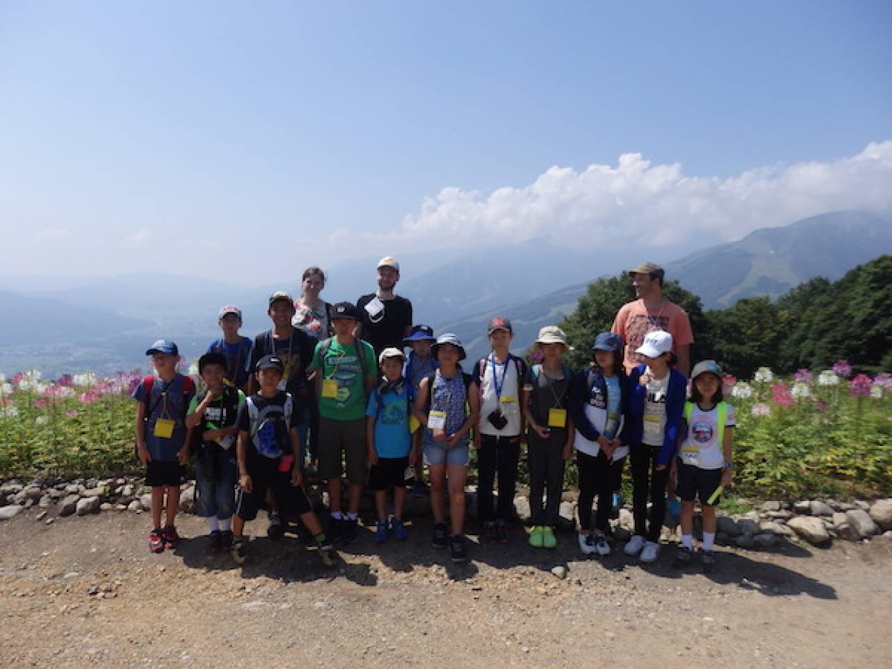 頂上で全員集合の記念撮影の後に2つのクラスに分かれ青空教室が始まりました。
